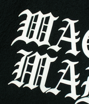 THE LOGO ON THE LEFT CHEST AND BACK IS MADE BY SEWING ON FELT FABRIC.
