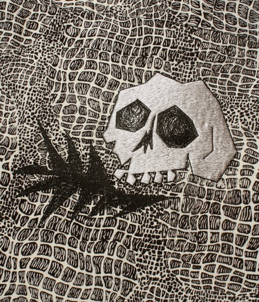 THE DESIGN ON THE BACK IS EMBROIDERED.